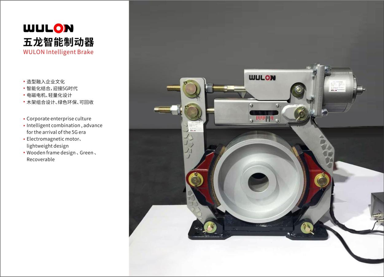2.制動器設計中,融入企業品牌文化,右側為簡體的“5”字和簡化的“龍”形表達,左側為大寫的L,將企業五龍的品牌理念體現在產品上。