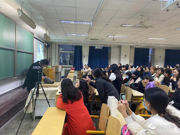 12月1日,陳氏定窯藝術(shù)總監(jiān)龐永輝受邀到華北電力大學(xué)進(jìn)行定窯非遺文化學(xué)術(shù)報(bào)告,報(bào)告圍繞定窯歷史與發(fā)展、工藝及特點(diǎn)、傳承與創(chuàng)新三個(gè)方面展開(kāi),并對(duì)定窯刻花技藝進(jìn)行了現(xiàn)場(chǎng)展示。