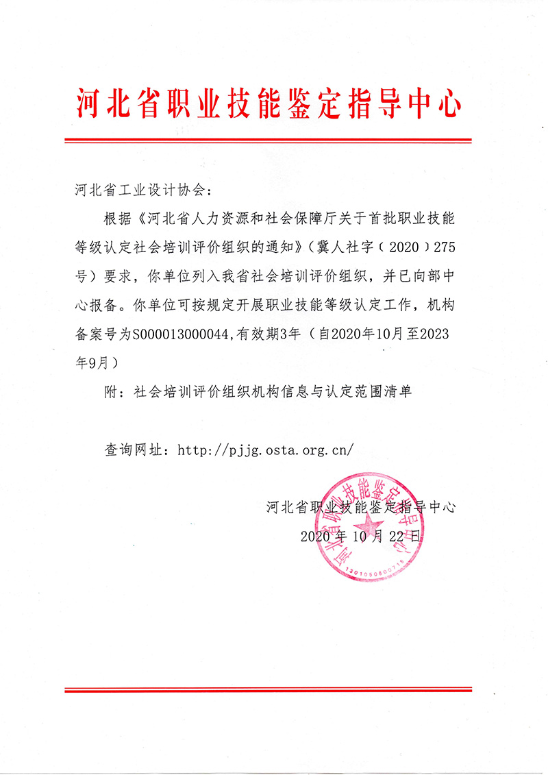 下一篇:河北省職業技能等級認定機構(河北省工業設計協會)承諾書